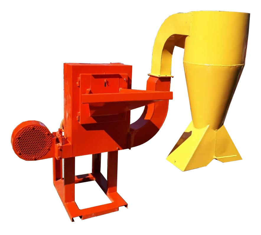 The Hammer Mill consists of a rotor box, 360° sieve ring, an adjustable inner trap door, intake chute with sluice, a rotor fitted with 8 blades and a 360°perforated sieve.